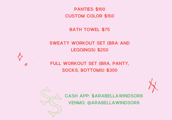 or Venmo → @ArabellaWindsor8Email Me at goddessarabella8@protonmail.com with: